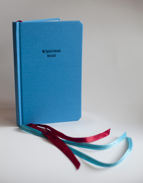 My Spanish Journal Revisited investigates the liminal space between childhood and adulthood by juxtaposing two texts: My Spanish Journal—a child’s text focusing on Spanish vocabulary that also reveals funny, intimate, and painful stories about the speaker’s family—and A Lesson in Color—a poem written by the child, now grown woman, that details her experiences traveling in Mexico. Through examining the culture and colors, she cannot help but recall the traumatic event from her childhood (represented in the child’s text by erased pages). Color is a very imporatant element to this piece. There is a constant play between red and blue throughout the book: red representing femininity, pain, and trauma, while blue, on the otherhand, symbolizes uplifting images found within the Mexican landscape. What results is a strange and often disquieting play between the two colors, the two texts, and also between the realms of girlhood and womanhood.